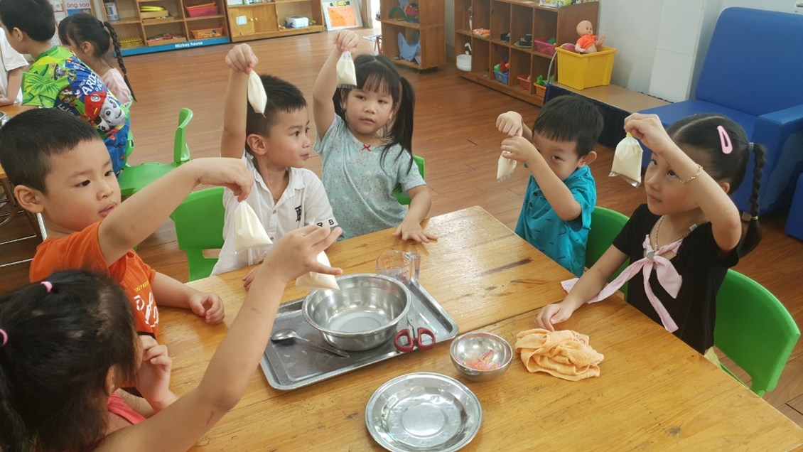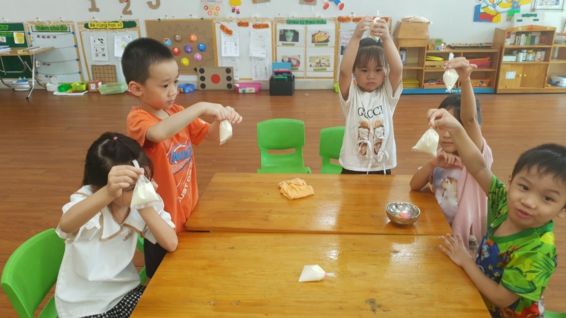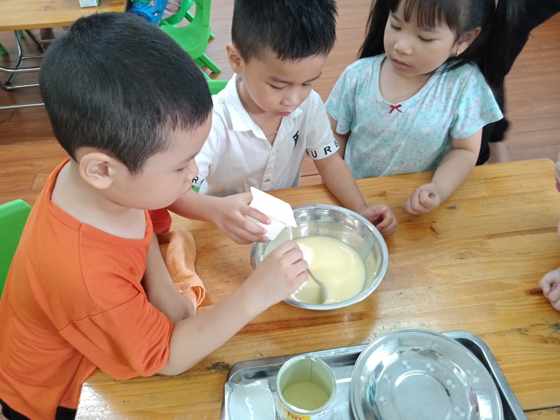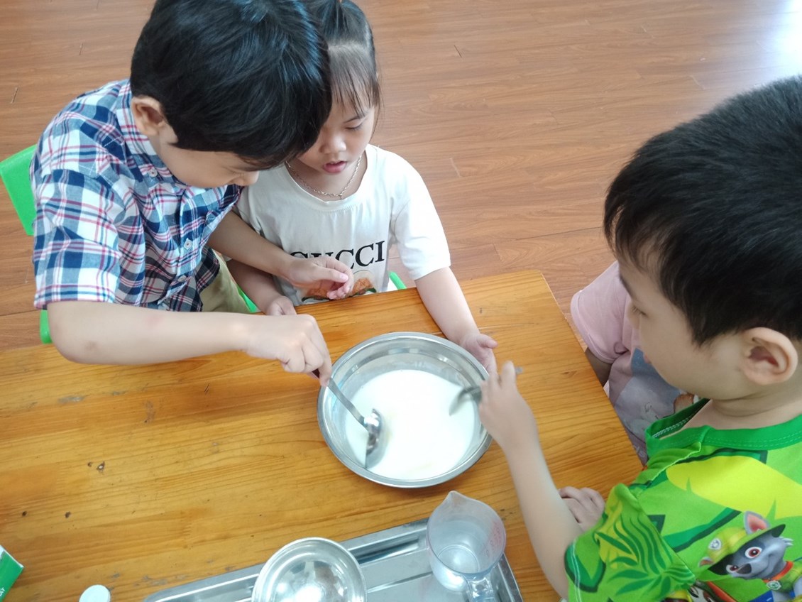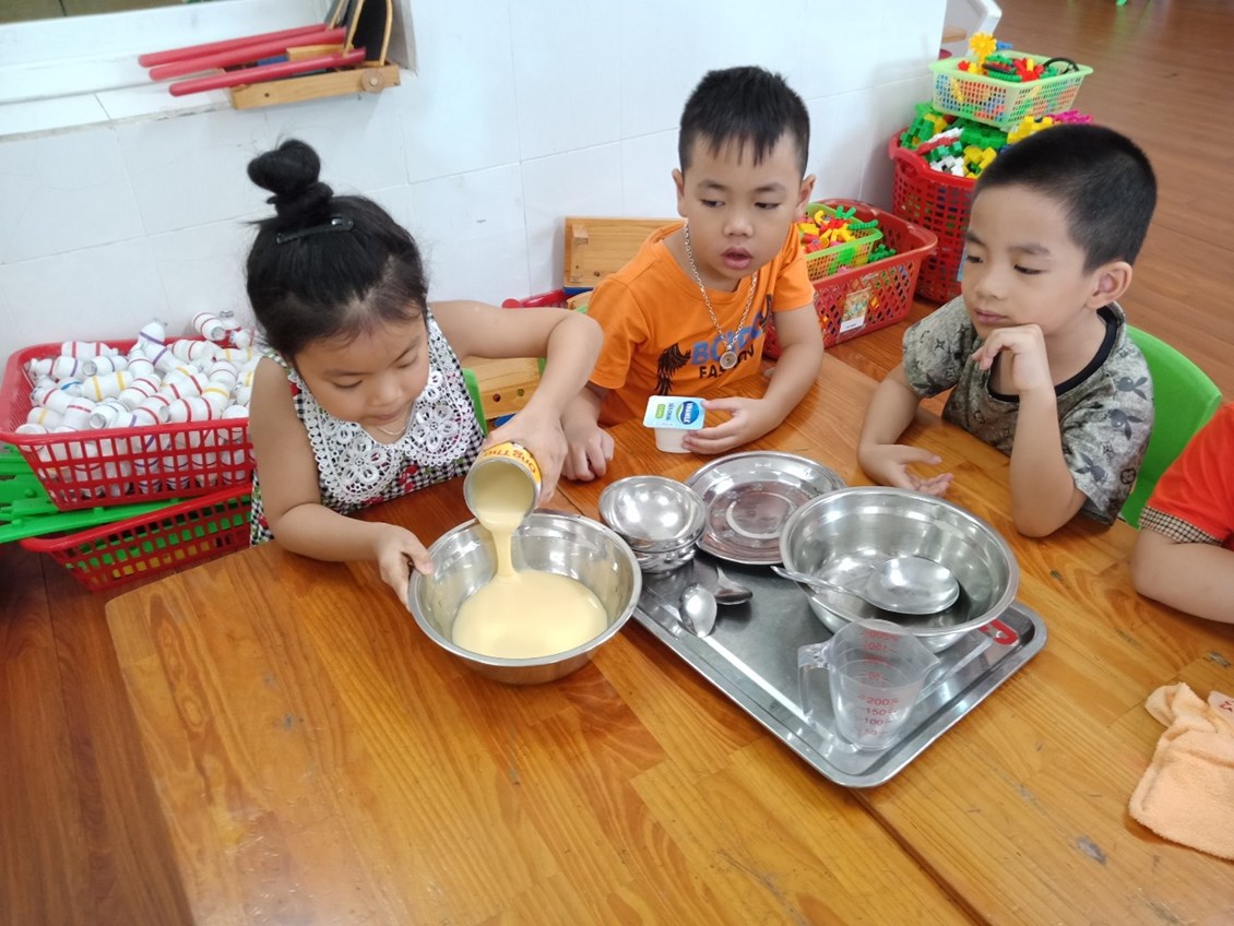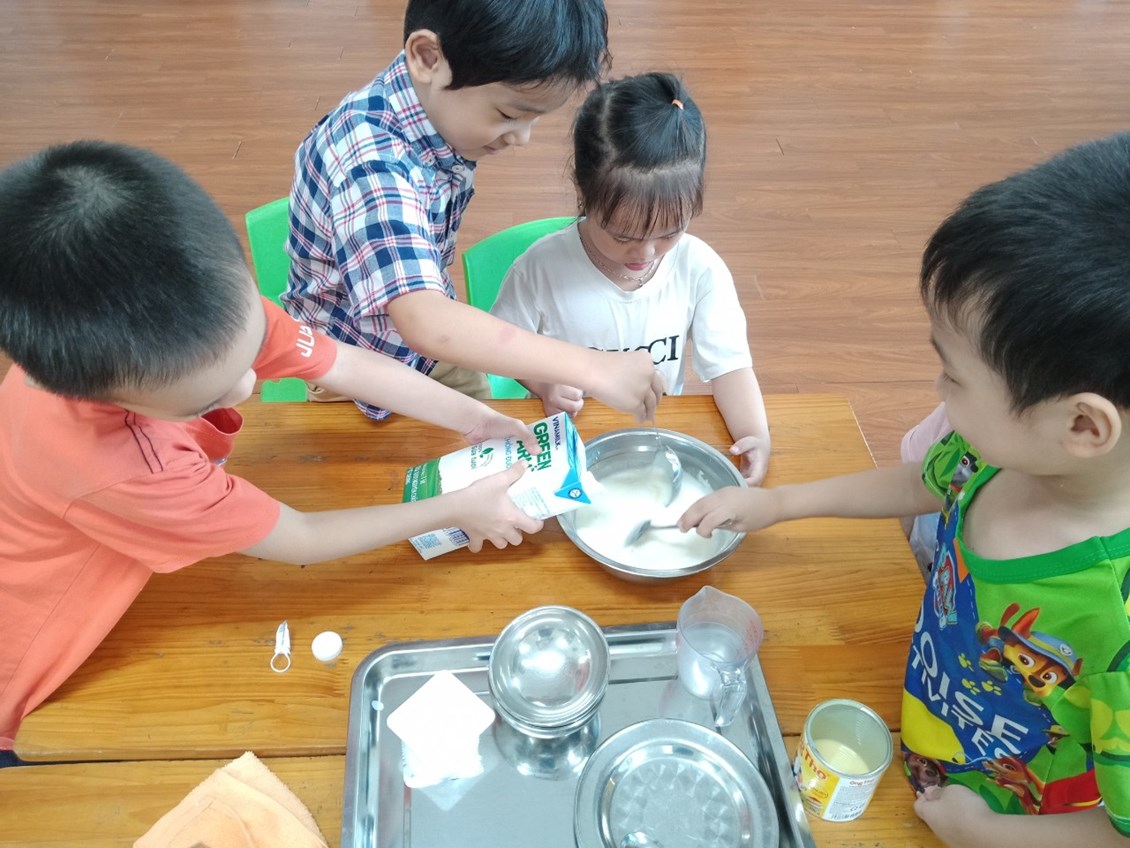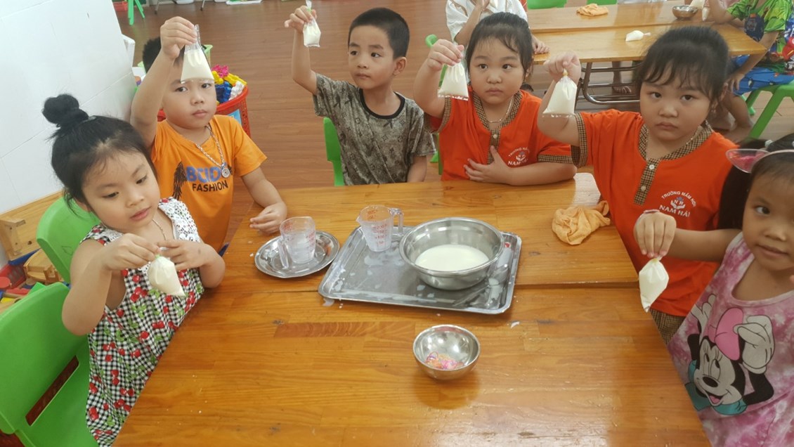 hời tiết oi bức như thế này được thưởng thức một cốc sữa chua dầm ngon tuyệt thì còn gì bằng phải không ạ? Không cần ra ngoài hàng, hôm nay các bạn nhỏ lớp 5a3 trường mầm non Nam Hải và các cô đã cùng nhau tự làm những cốc sữa chua tươi ngon! Chúng mình cùng xem các bạn ấy làm sữa chua theo sự hướng dẫn của các cô như thế nào, có hấp dẫn không nhé!