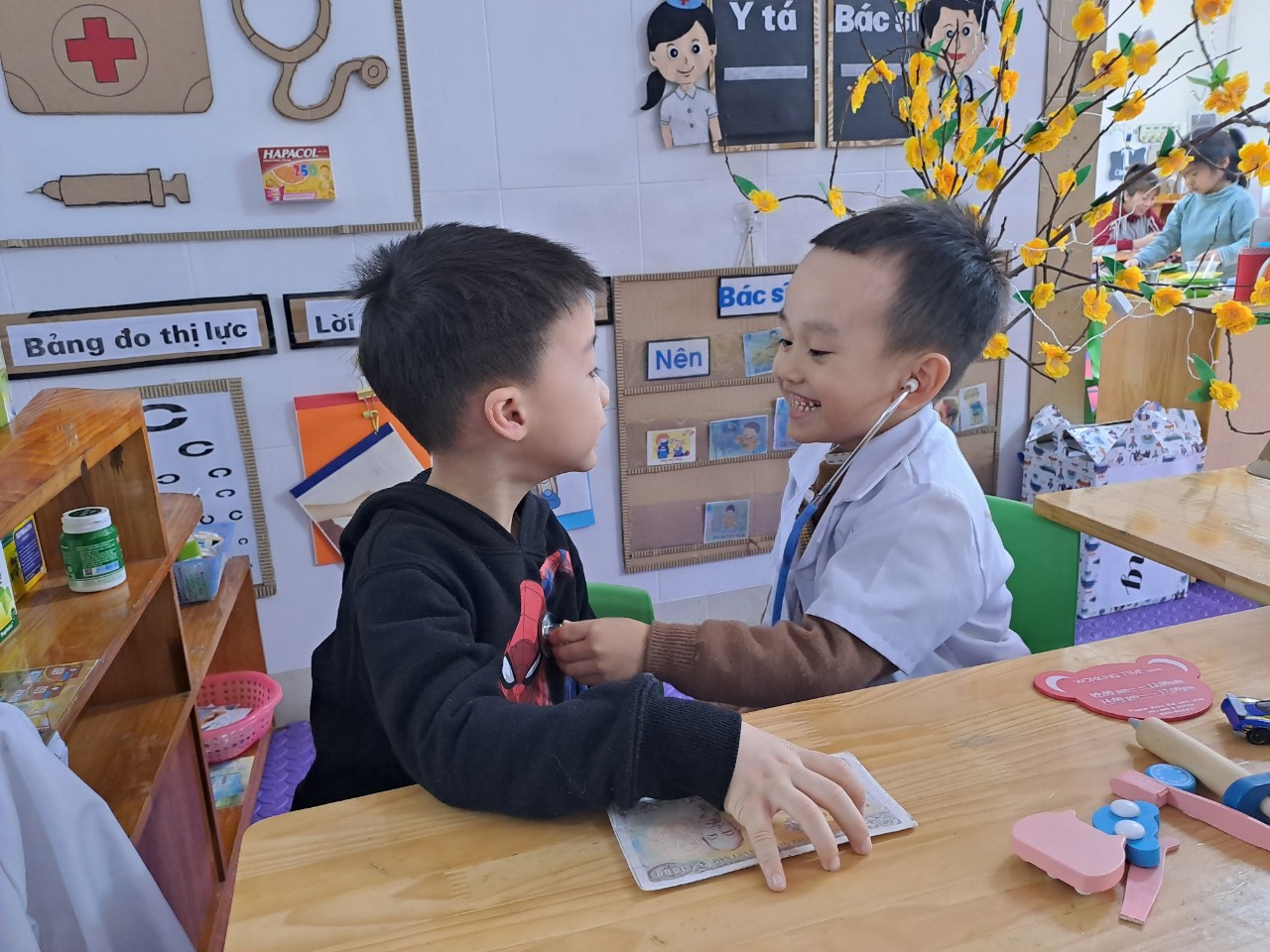 Hoạt động góc trong trường mầm non là phương tiện phát triển toàn diện về đạo đức, trí tuệ, thẩm mĩ, thể chất. Trẻ em đến trường không chỉ cần được nuôi dưỡng, chăm sóc sức khỏe được học tập mà quan trọng nhất là đc vui chơi… không những thế thông qua các hoạt động góc hằng ngày giúp trẻ chia sẻ niềm vui của mình với bạn bè, cộng đồng làm cho thế giới xung quanh của các bé trở nên tươi đẹp hơn và rộng lớn hơn. Trẻ chơi chủ yếu là do nhu cầu và khả năng của trẻ, nhu cầu muốn bắt chước, muốn làm người lớn và ở trường mầm non, hoạt động góc chính là phương tiện giúp trẻ tham gia vào “xã hội người lớn” một cách hiệu quả nhất. Và đây là một số hình ảnh trong hoạt động góc của lớp 4B2- trường mầm non Nam Hải.