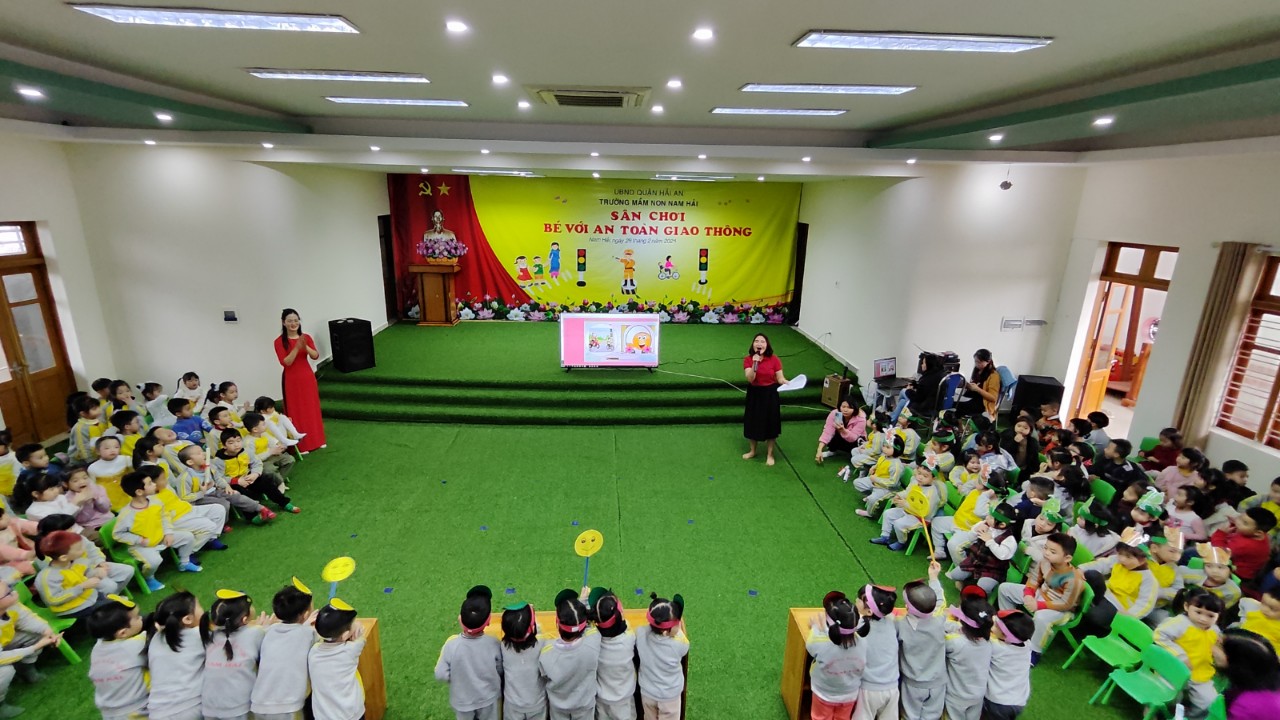 Thực hiện kế hoạch số 37/KH-MNNH ngày 27/09/2023 của trường MN Nam Hải về Kế hoạch triển khai chương trình Tôi yêu Việt Nam năm học 2023-2024, ngày 28/02/2024 trường mầm non Nam Hải tổ chức sân chơi "Bé với an toàn giao thông"