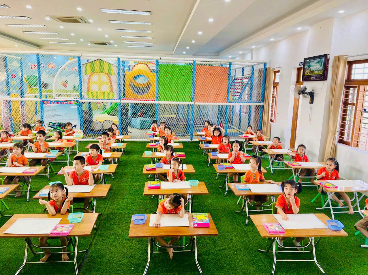 Những bức tranh của các bé với các ý tưởng độc đáo đã khiến người xem không khỏi bất ngờ trước tài năng và tư duy sáng tạo của các bé. Có bức tranh mô tả các bạn cùng nhau vui chơi dưới tán cây xanh mát, có bức tranh lại là hình ảnh lớp học ngập tràn tiếng cười. Qua từng tác phẩm, các bé không chỉ thể hiện được sự hiểu biết về quyền trẻ em, mà còn bộc lộ niềm vui, hạnh phúc khi được học tập, vui chơi trong ngôi trường thân yêu.