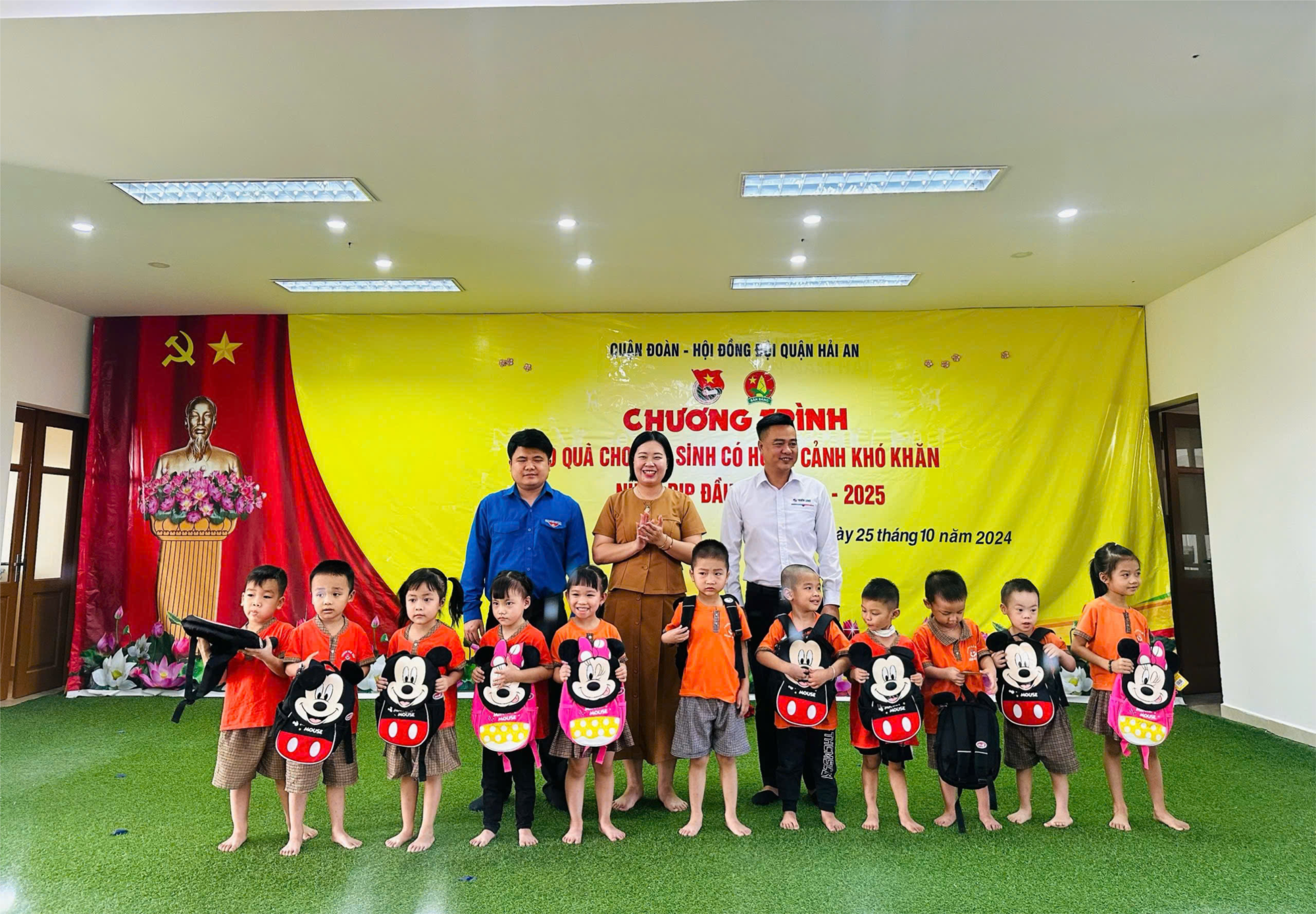 Thực hiện chương trình công tác năm học 2024 - 2025, nhằm khích lệ, động viên các em học sinh có hoàn cảnh khó khăn vươn lên trong học tập; hôm nay, thừa uỷ quyền của Thành đoàn, BTV Quận đoàn Hải An tổ chức chương trình trao quà cho học sinh có hoàn cảnh khó khăn tại trường MN Nam Hải;